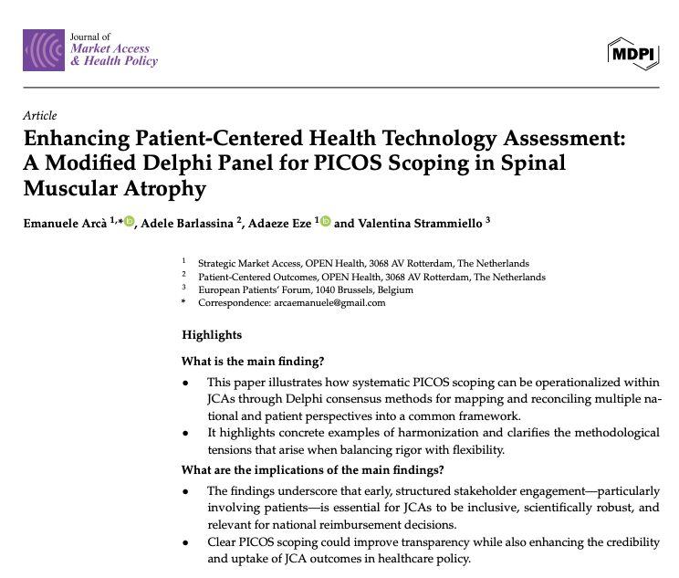 PICOS Scoping and consolidation of PICOs as well as patient involvement are critical topics and have been prioritised as key success factors for EU HTA. In a recent publication, Valentina Strammiello from European Patients' Forum and colleagues show at the example of Spinal Muscular Atrophy, how - utilising structured patient engagement - systematic PICOS scoping can be facilitated and how reconciliation and harmonisation can be achieved in a transparent process.